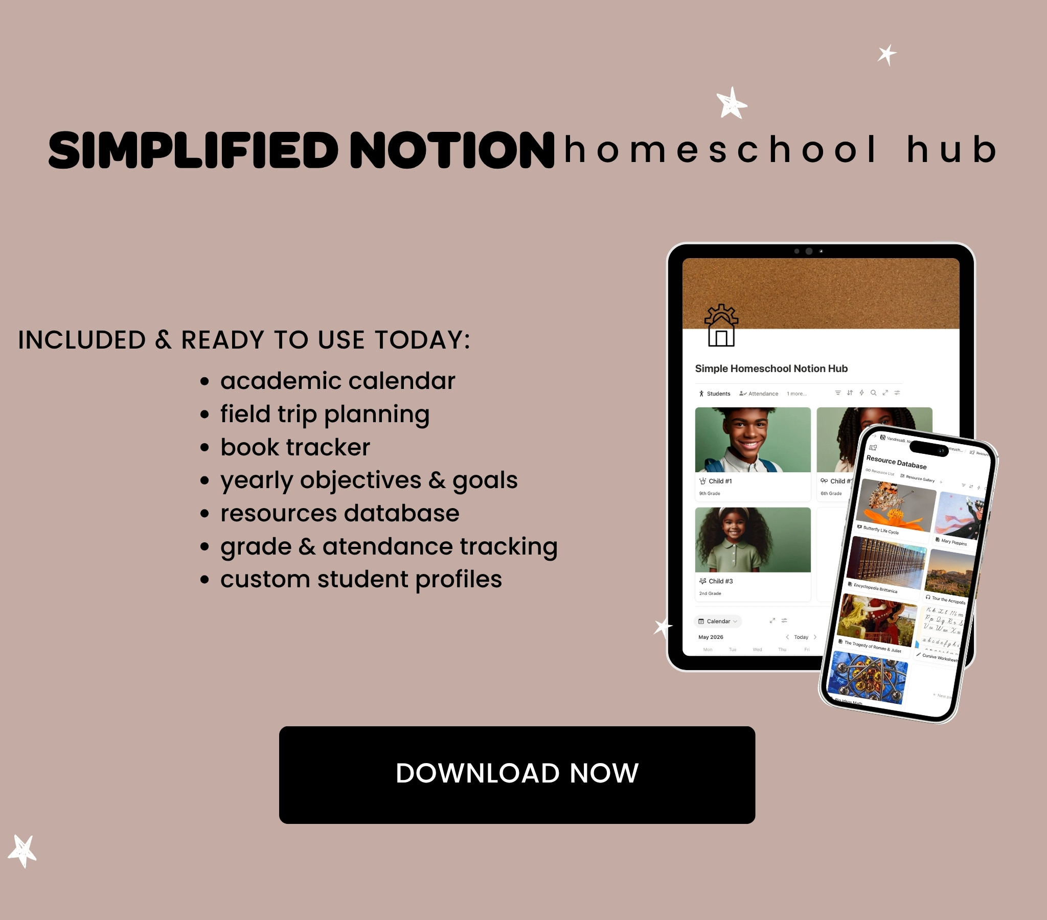 There are multiple Notion templates to get yourself organized, be it for content creation or homeschool needs. You’ll also find many printable options including e-books, GoodNotes templates, or journal prompts.